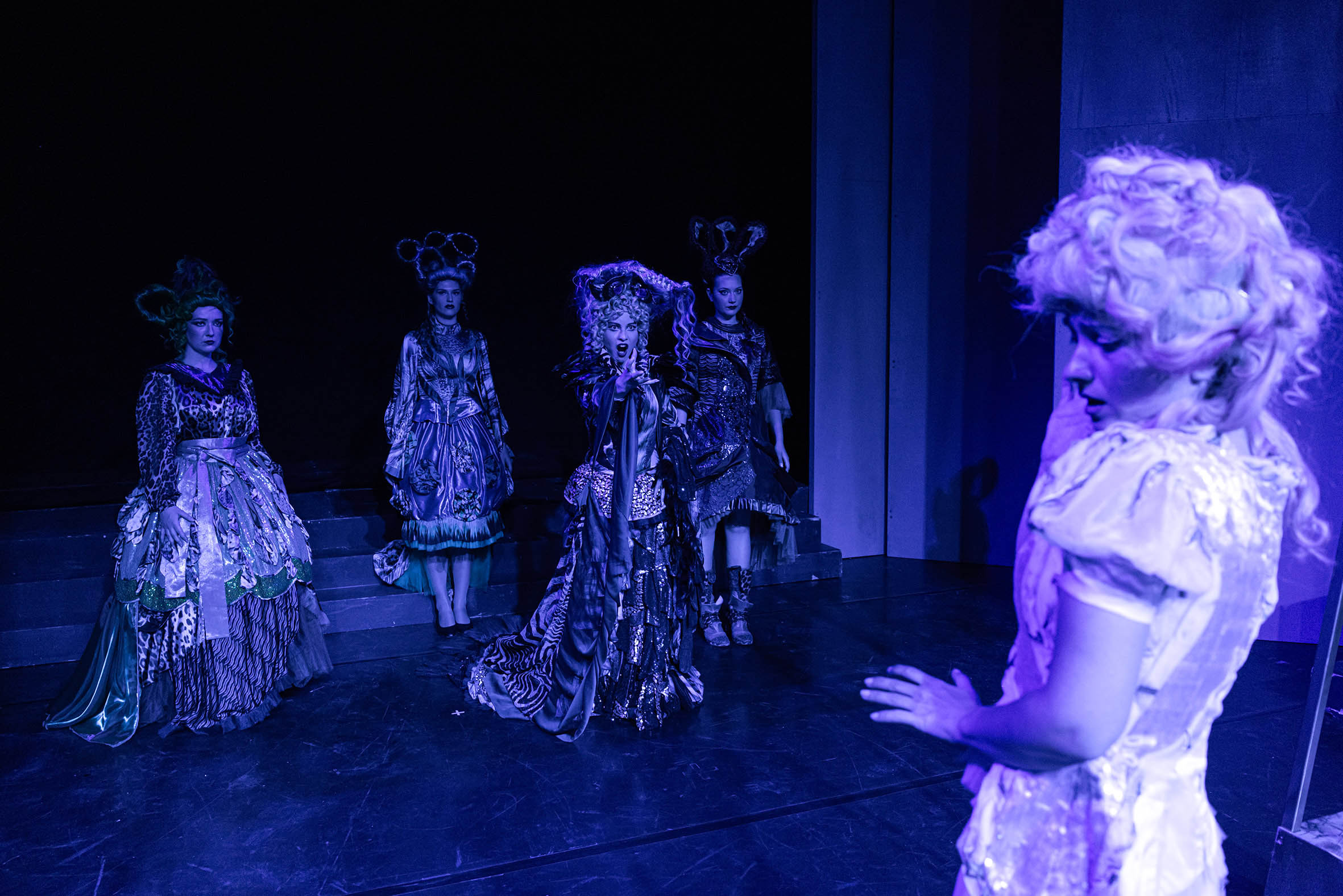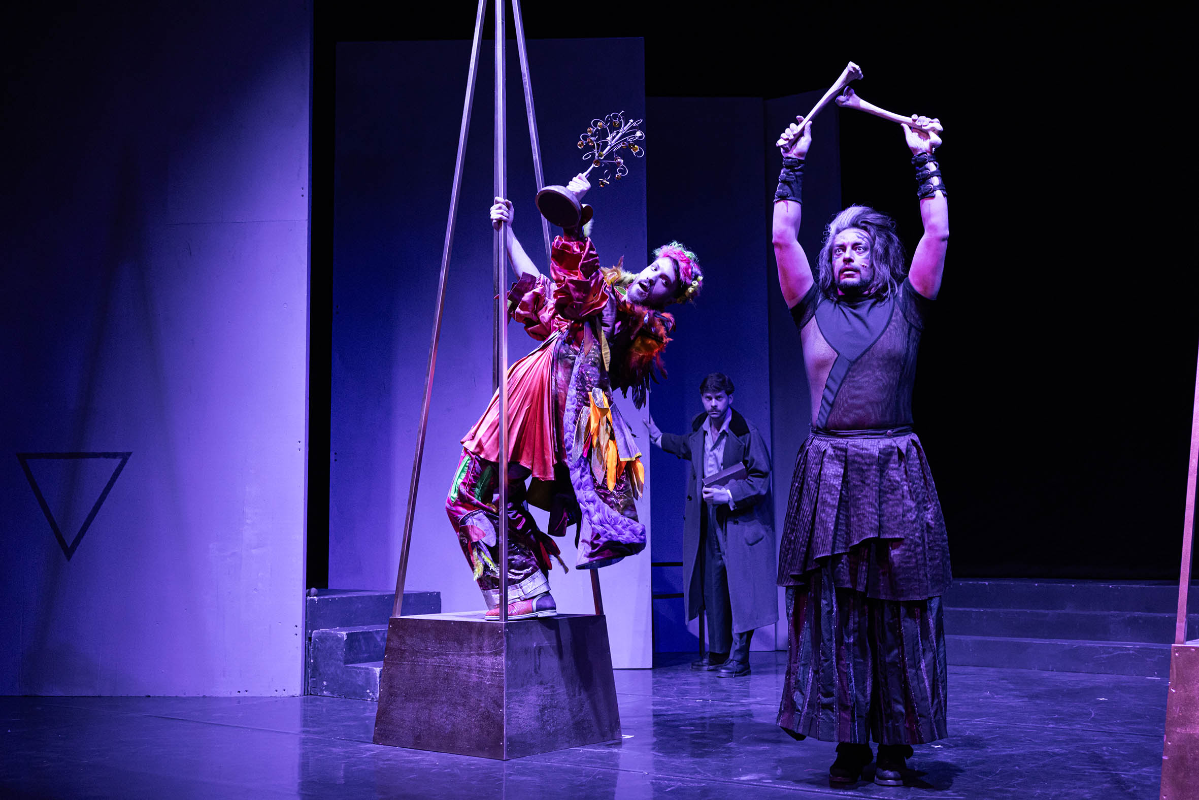 Monostatos je lik koji deluje iz straha i nedostatka pripadanja, vođen željom koju ne ume da razume ni da kontroliše. Njegova pozicija otkriva šta se dešava kada čovek ostane zarobljen u sopstvenoj senci. Nasuprot njemu stoji Sarastro, koji predstavlja mir, red i sposobnost da se stvari sagledaju bez potrebe za nametanjem sile. Kraljica noći nosi snažnu emociju i potrebu za kontrolom, koja proizilazi iz straha od gubitka. Ti likovi ne postoje kao jednostavne suprotnosti, već kao različiti polovi istog unutrašnjeg prostora, kroz koji se junaci kreću i u kojem donose svoje odluke.