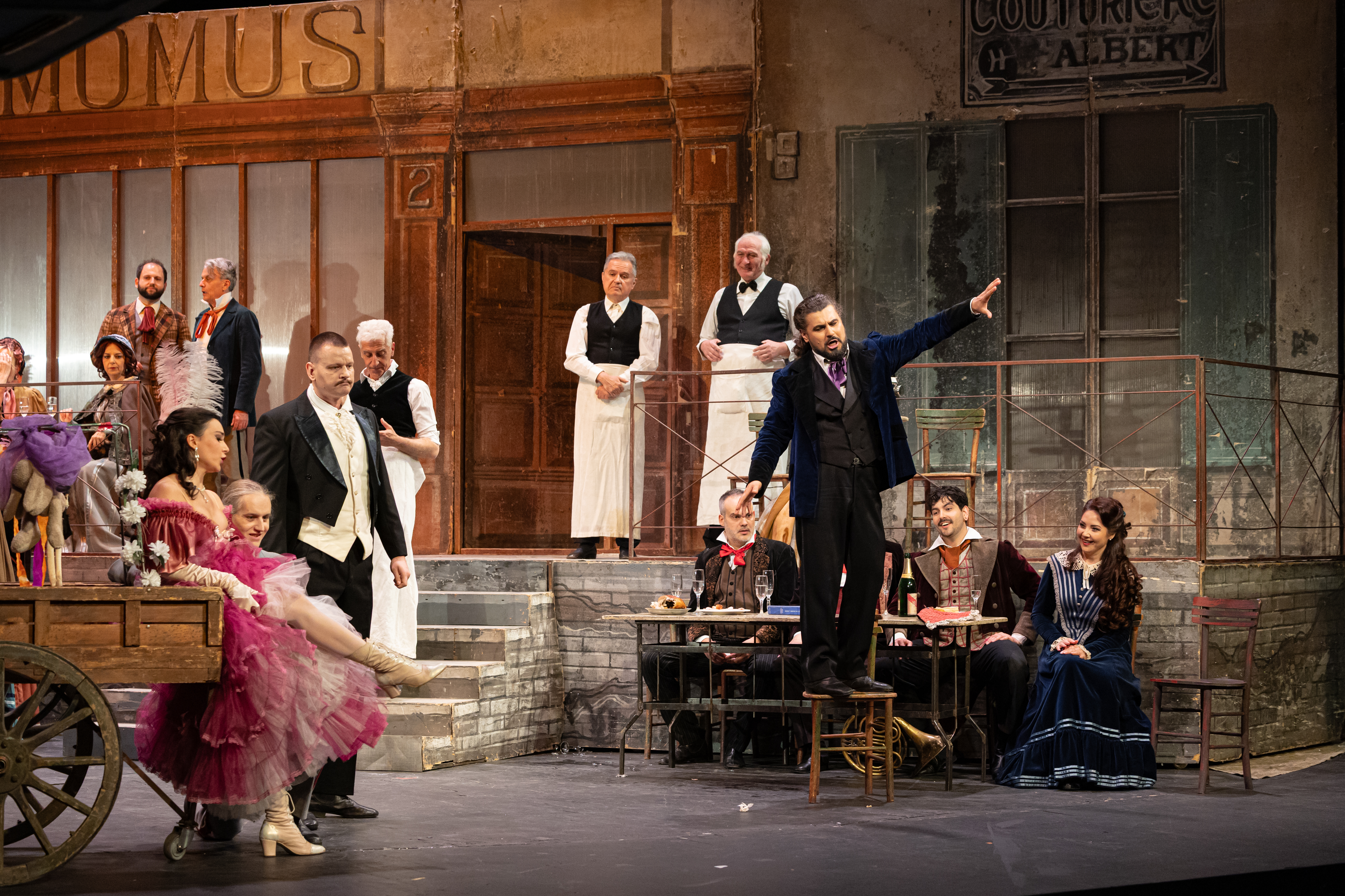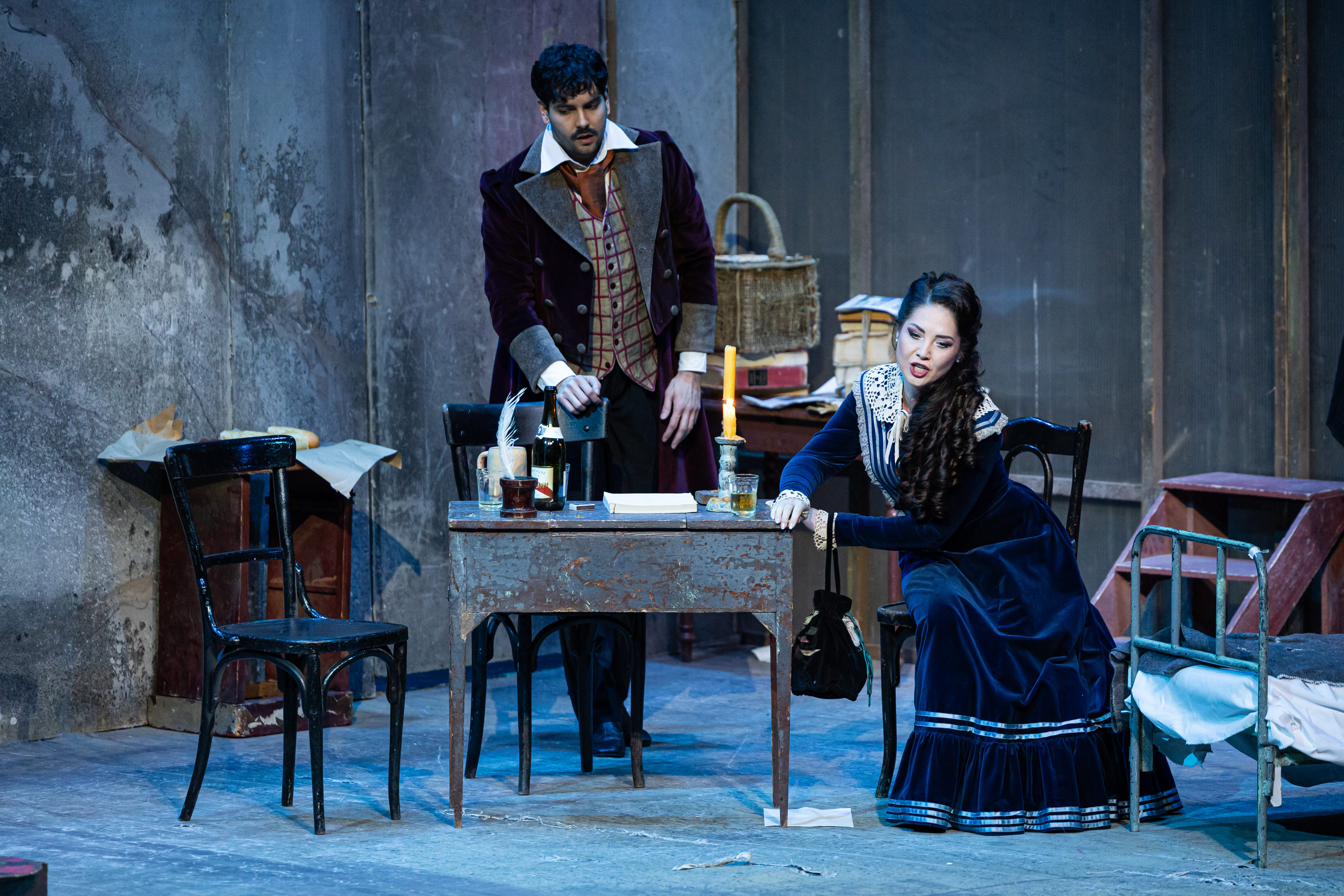 Ulogu strastvenog pesnika Rodolfa pevao je tenor Ian Spineti iz Nemačke, slikara Marsela dočarao je bariton iz Rumunije Vasile Šerban, dok je lik nesrećne heroine Mimi, bio poveren rumunskoj umetnici, sopranu Diani Cugui.