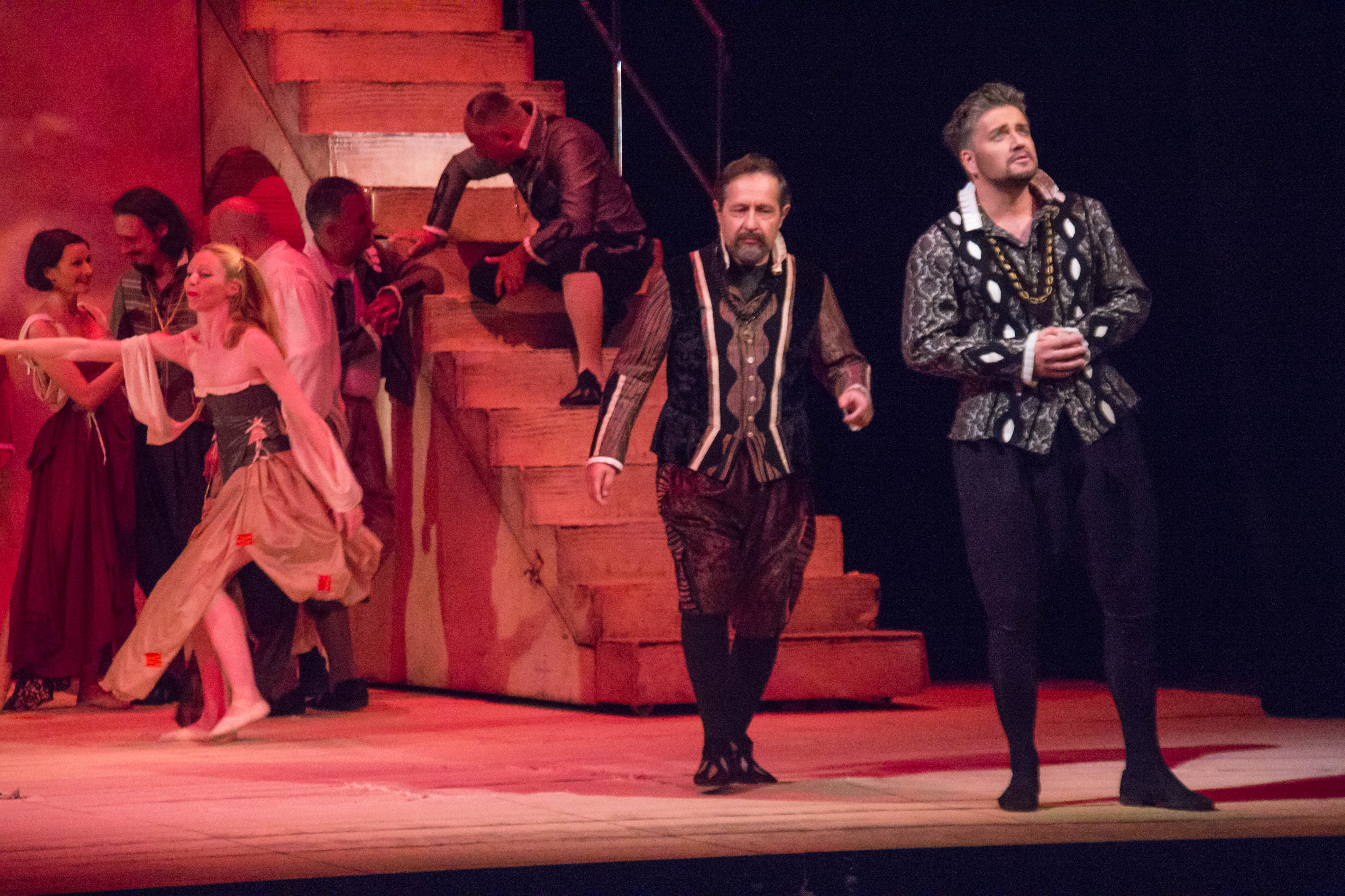 Први и трећи чин на двору у Мантови; други чин у забаченом крају Мантове;