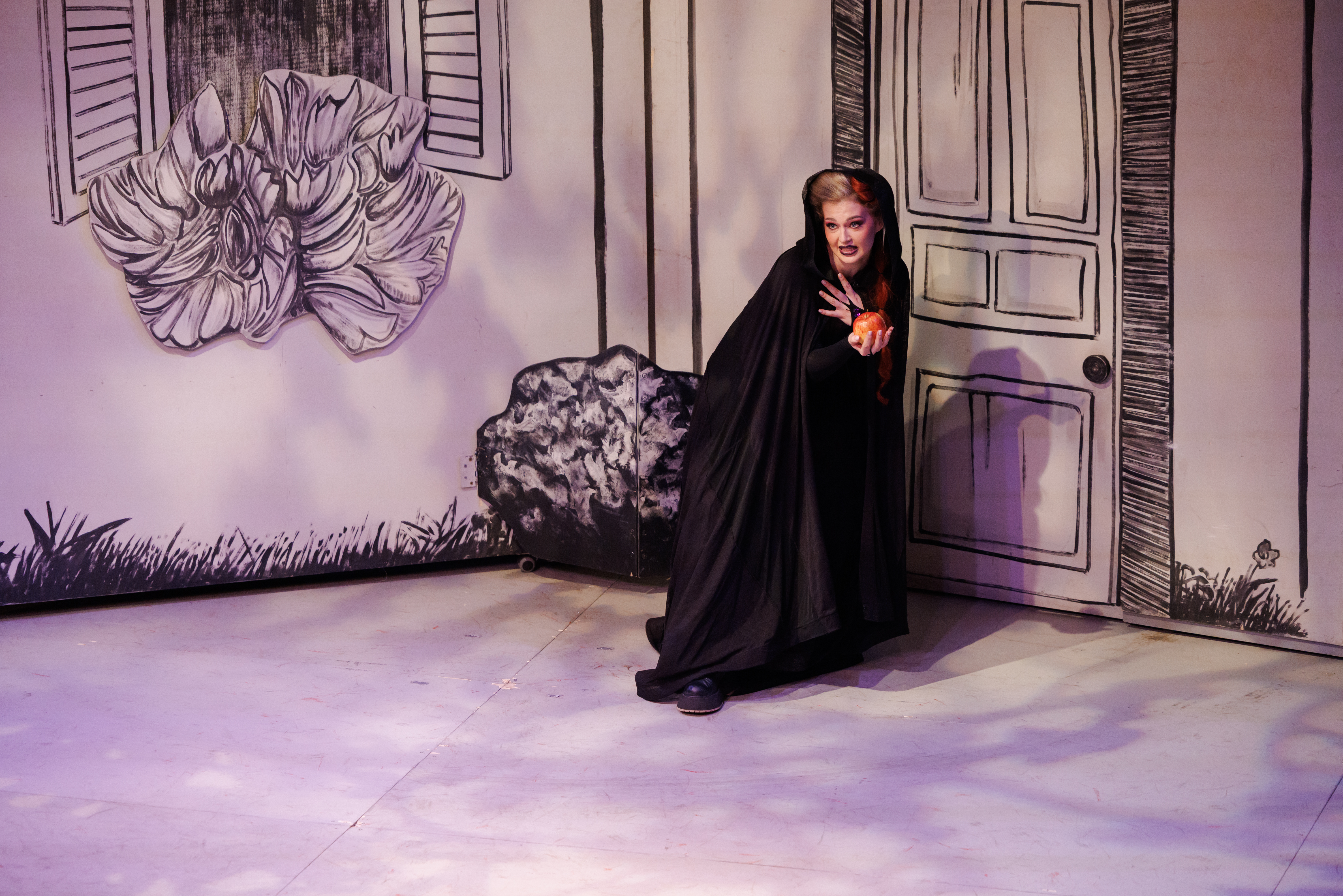 Тематски оквир интерпретације заснива се на идеји немогућности очувања спољашње лепоте. Краљица, опседнута сопственим изгледом, комуницира са својим одразом у огледалу које на њу врши притисак да мора бити најлепша. Њен сукоб са пасторком Снежаном настаје јер је она лепша, али и млађа од ње. Краљица није у стању да се помири са својим годинама и лепотом коју, упркос великом труду, не може да очува.