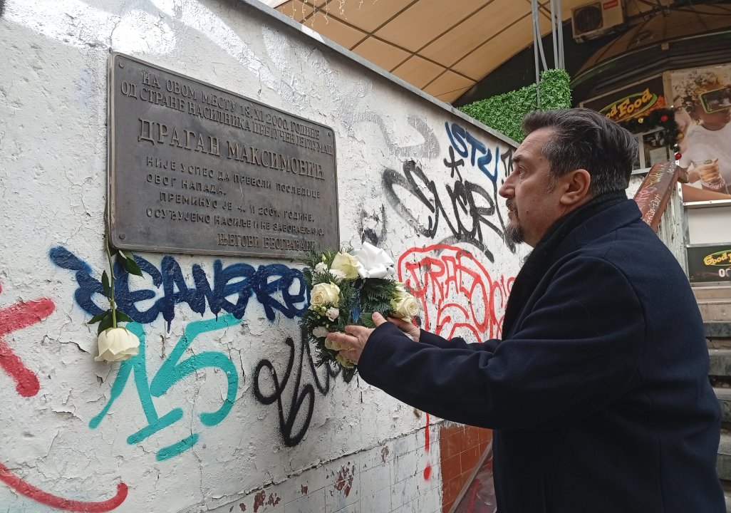 Спомен-плоча је постављена на месту где је некадашњи првак Драме Народног позоришта брутално претучен у ноћи између 17. на 18. новембар 2000. године од стране насилника.