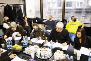 The first reading rehearsal of “The Iran Conference”, a play by Ivan Vyrypayev, translated by Sanja Milić and directed by Ivana Vujić Kominac was held on December 9 at the National Theatre library in Belgrade.