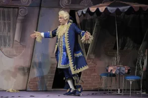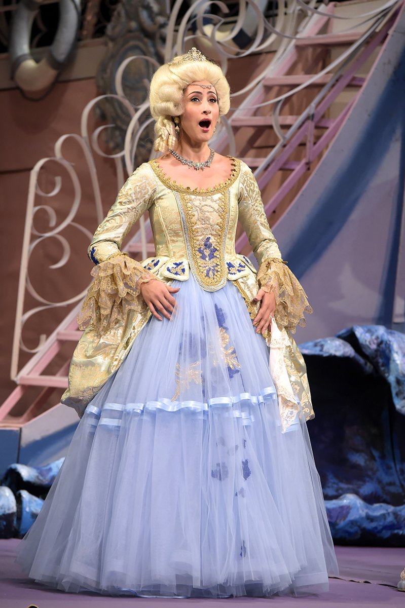 Magnifico fears that the arrival of the stranger could ruin his daughters’ chances to marry the prince (“Sia qualunque delle figlie”). Cenerentola, tired of being pursued by Dandini, tells him that she is in love with his servant. Overhearing this, Ramiro is overjoyed and steps forward. Cenerentola, however, tells him that she will return home and doesn’t want him to follow her. If he really cares for her, she says, he will find her. The prince resolves to win the mysterious girl (“Si, ritrovarla io giuro”). Meanwhile Magnifico, who still thinks that Dandini is the prince, confronts him, insisting that he decide which of his daughters he will marry. Dandini first advises him to be patient, then reveals that he is in fact the prince’s servant (Duet: “Un segreto d’importanza”). Magnifico is furious. Magnifico and the sisters return home in a bad mood and order Cenerentola, again in rags, to prepare supper. During a thunderstorm, Alidoro arranges for Ramiro’s carriage to break down in front of Magnifico’s castle so that the prince has to take refuge inside. Cenerentola and Ramiro recognize each other as the various parties comment on the situation (Sextet: “Siete voi?”). When Ramiro threatens Magnifico and his daughters who are unwilling to accept defeat, Cenerentola asks him to forgive them. At the prince’s palace, Ramiro and Cenerentola celebrate their wedding. Magnifico tries to win the favor of the new princess, but she asks only to be acknowledged at last as his daughter. Born to misfortune, she has seen her life change and invites her family to join her, declaring that the days of sitting by the fire are over (“Non piu mesta”).
