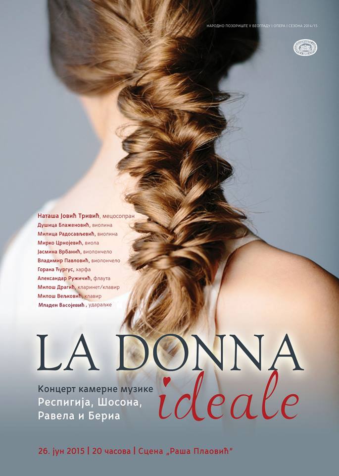 Концерт камерне музике Респигија, Шосона, Равела и Бериа под називом “LA DONNA IDEALE”, у режији Ане Григоровић, биће одржан у петак 26. јуна (20,00) на Сцени “Раша Плаовић”.